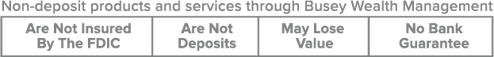 Planning for your retirement? The Busey Wealth Management team can help ensure you’re prepared for what’s to come. To find an advisor near you or learn more about our holistic services, visit busey.com/wealth-management.